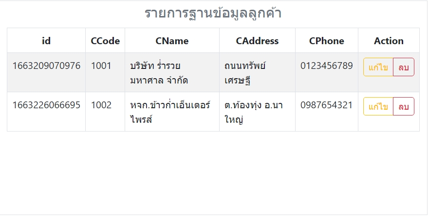 // เพิ่มปุ่ม แก้ไข + ลบ ที่คอลัมน์ Action